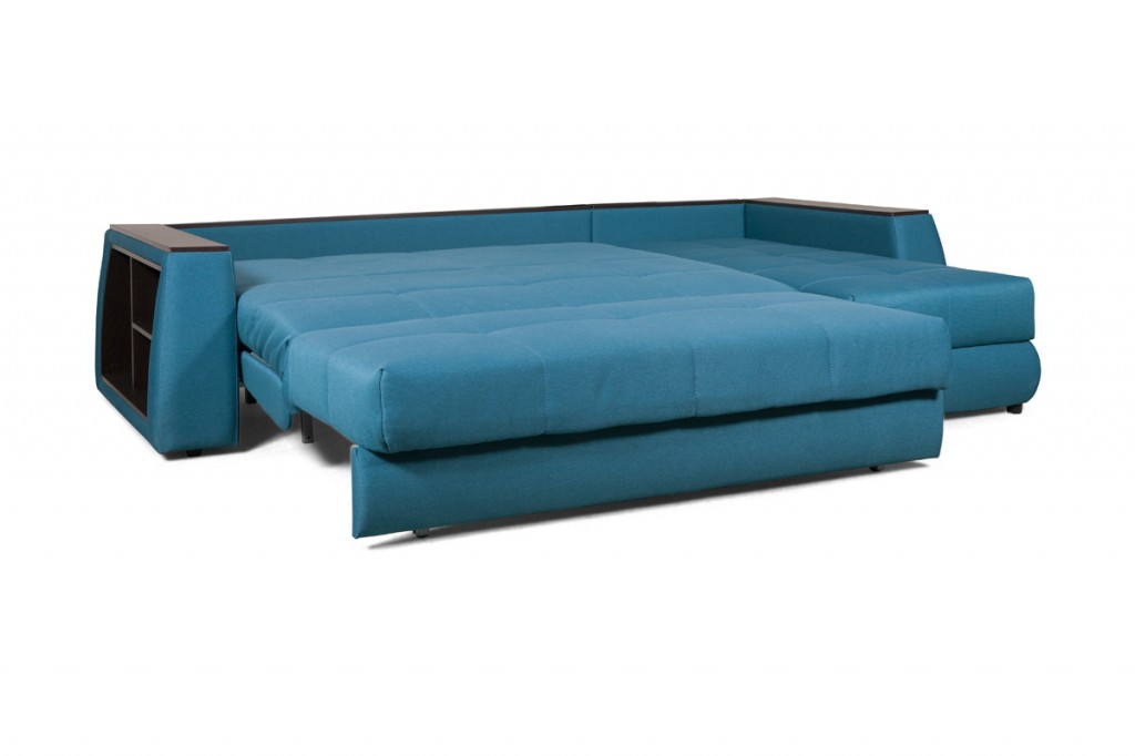 Угловой элемент содержит просторный ящик для хранения белья. Подлокотники со встроенными полками.