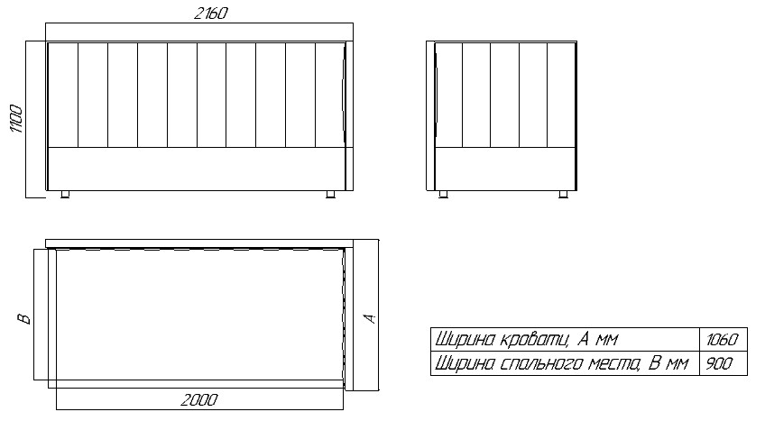 Длина: 2160 мм Ширина: 1060 мм Высота: 1100 мм Спальное место: 900х2000 мм Ниша для белья: Есть Подъемный механизм: Газлифт